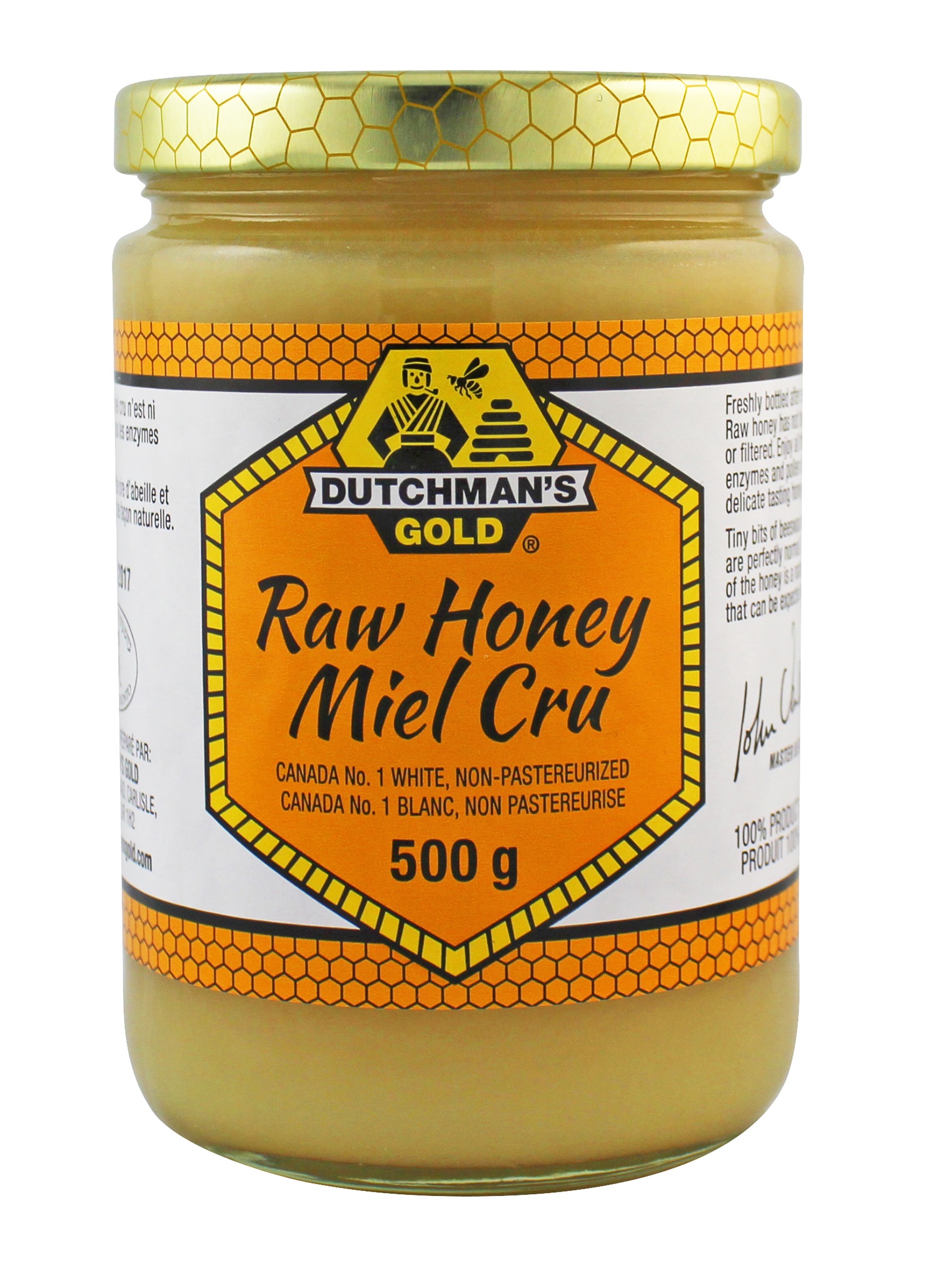 Dutchman's Gold Raw Honey Click here to view available sizes >> *TOP SELLER* Guaranteed 100% Canadian honey. No off-shore honey EVER. The Dutchman's Gold Raw Honey is our top selling honey product. This pure, Raw Honey is unheated and unpasteurized. It contains all of the wonderful compounds that nature intended including naturally occurring bee pollen, propolis and beeswax. Dutchman's Gold Raw Honey is produced in Ontario, Canada by Master Beekeeper John Van Alten. This award winning product regularly receives rave reviews from around the world on its unique taste and texture. Packed in glass. 3 kg and 15 kg packed in plastic pails. Ingredients: 100% raw honey. |