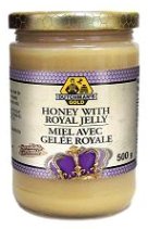 Available in 500 g (1.1 lb) glass bottle, our Royal Jelly blend is a perfect balance of Royal Jelly and Dutchman's Gold unpasteurized, creamed honey! It contains 2% royal jelly by weight (approximately 10 grams in the 500 gram size).